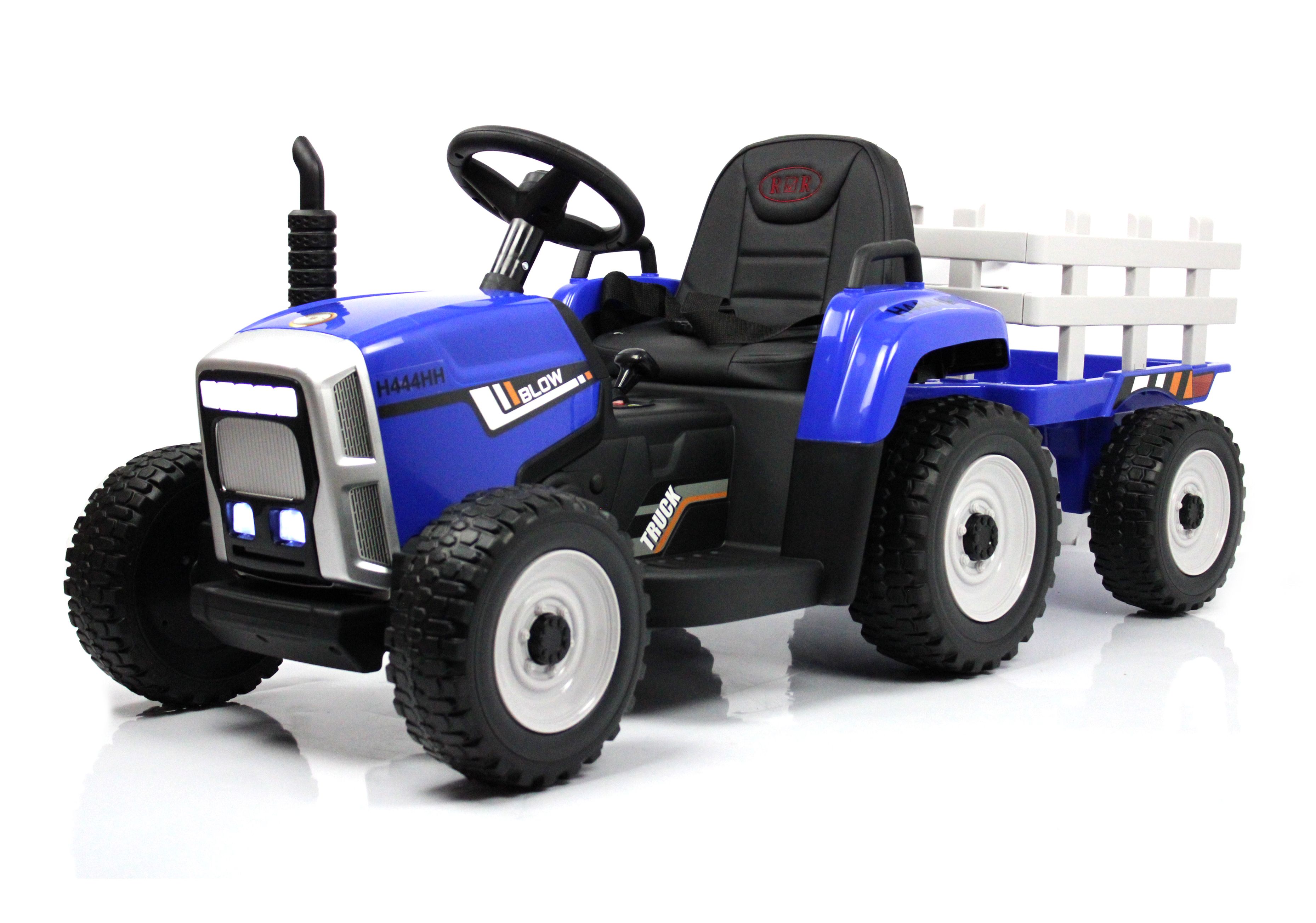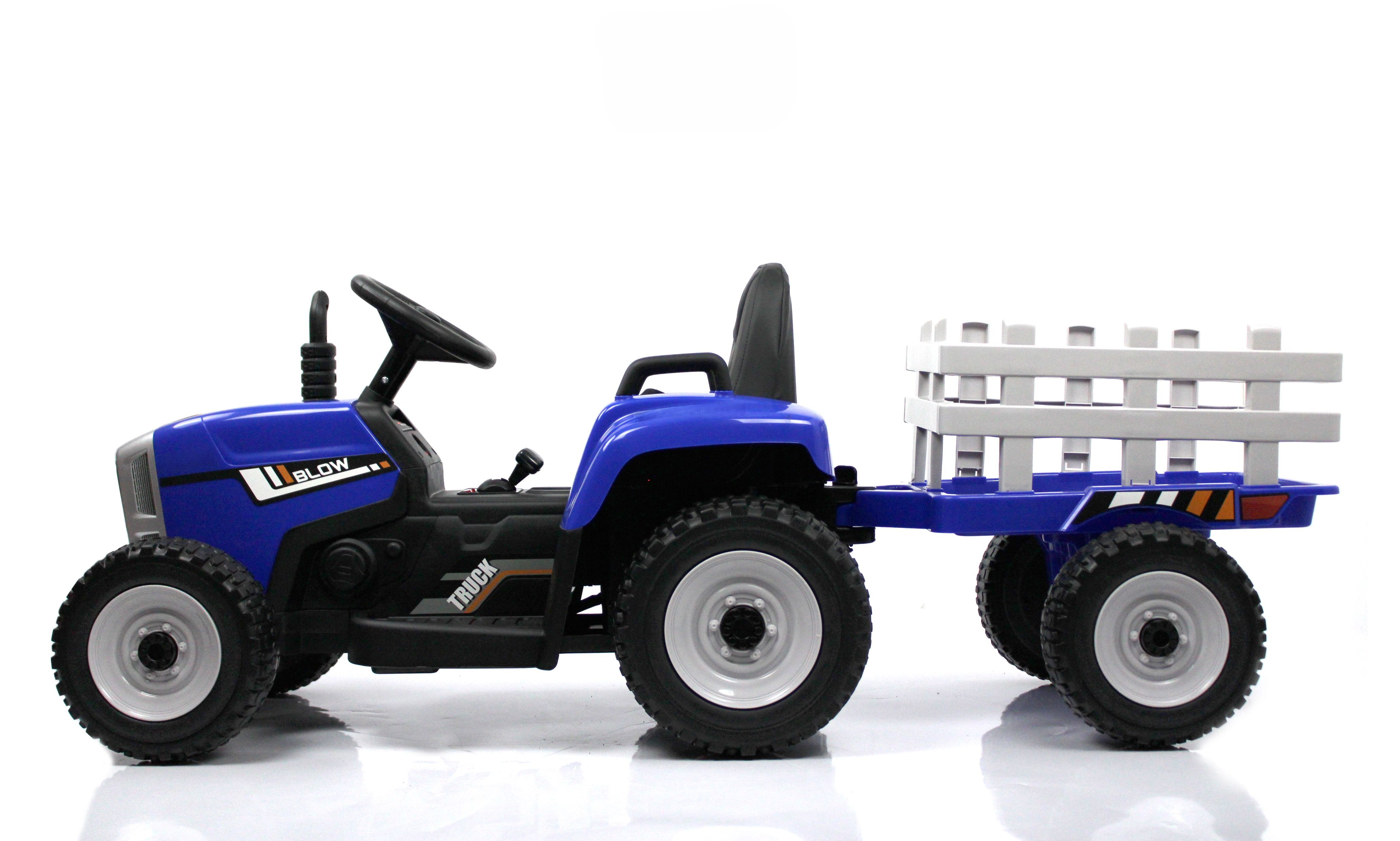 Электромобиль синий трактор с прицепом