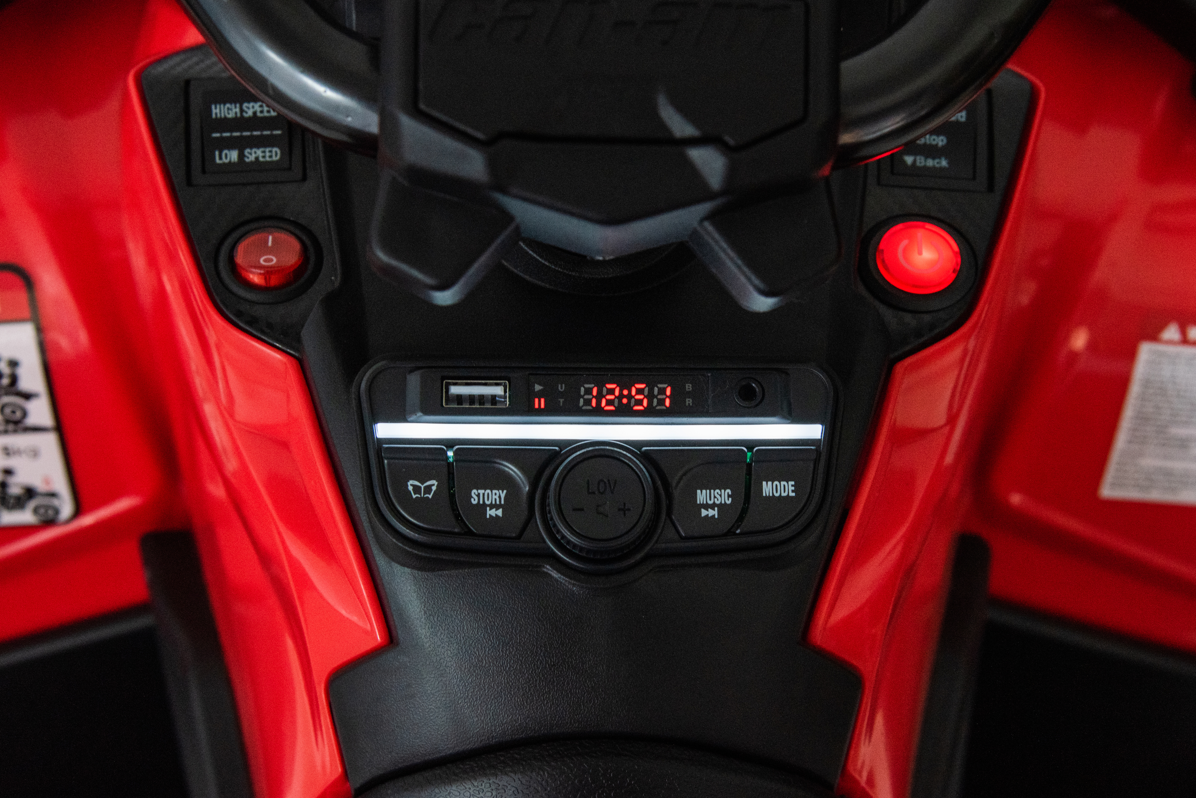 Максимальная скорость машинки – 9 км/ч в условиях передвижения вперед. Минимальный же скоростной режим прекрасно подходит для освоения навыков вождения при заднеходовом движении.