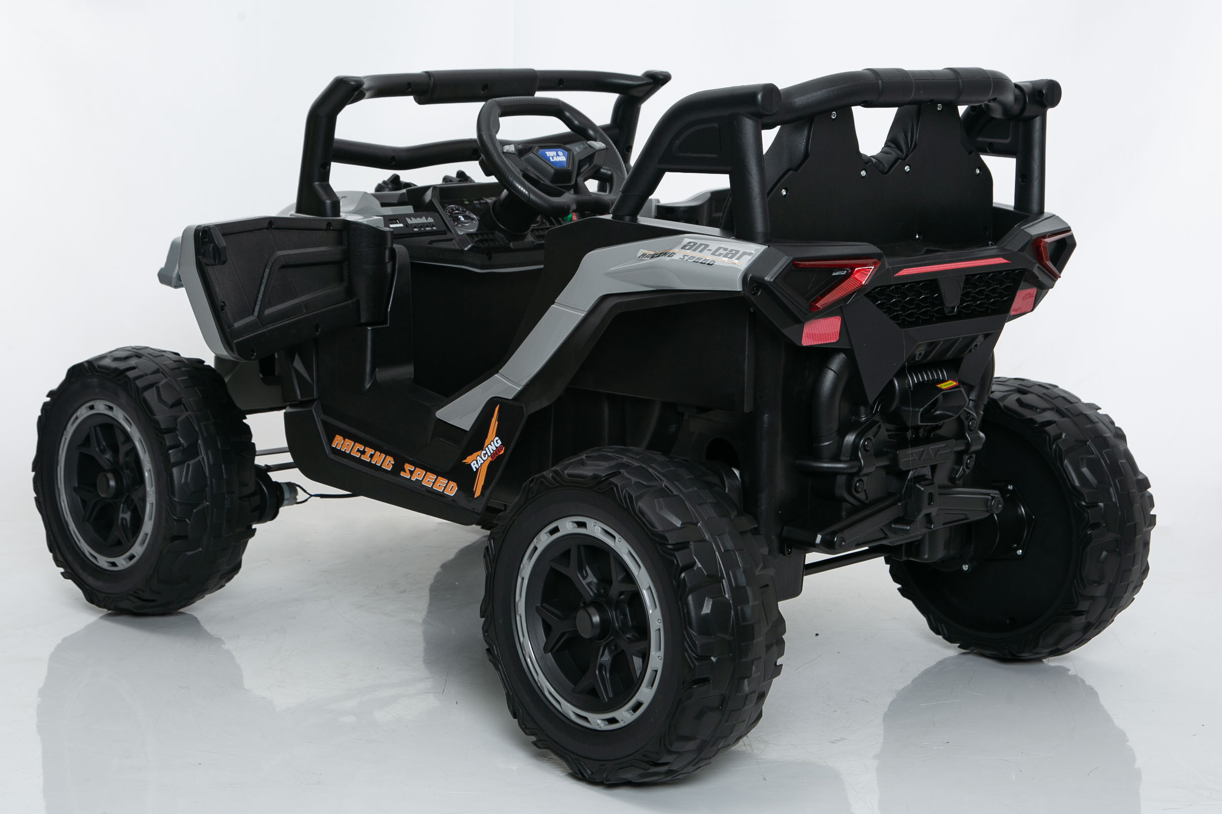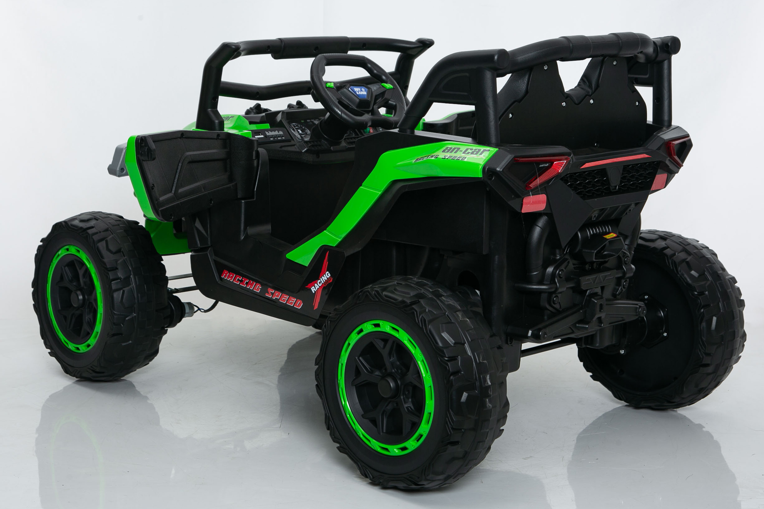Багги "7192" - Детский электромобиль 12V для детей от 1 до 4 лет — это компактная модель с высоким клиренсом и продуманной конструкцией, в которой все четыре мотора по 20W спрятаны внутри колёс. Такое решение делает работу привода тише и уменьшает вибрации при движении. Электромобиль оснащён аккумулятором 12V/7Ah, резиновыми EVA-колёсами, кнопкой запуска, педалью газа и стандартными скоростями вперёд и назад. Модель выдерживает нагрузку до 30 кг и выделяется двухсторонней амортизацией — редкость для машин такого размера, благодаря чему поездка получается мягче и комфортнее на прогулочных дорожках и дворовых покрытиях. Удобный порт зарядки расположен сзади, что облегчает подключение без необходимости наклонять или переворачивать модель. Предусмотрен родительский пульт управления, позволяющий полностью контролировать движение на первых прогулках. Эта машинка — детский электромобиль с тихими мотор-колёсами, высоким клиренсом и улучшенной амортизацией, подходящий для ежедневного использования и первых самостоятельных поездок ребёнка.