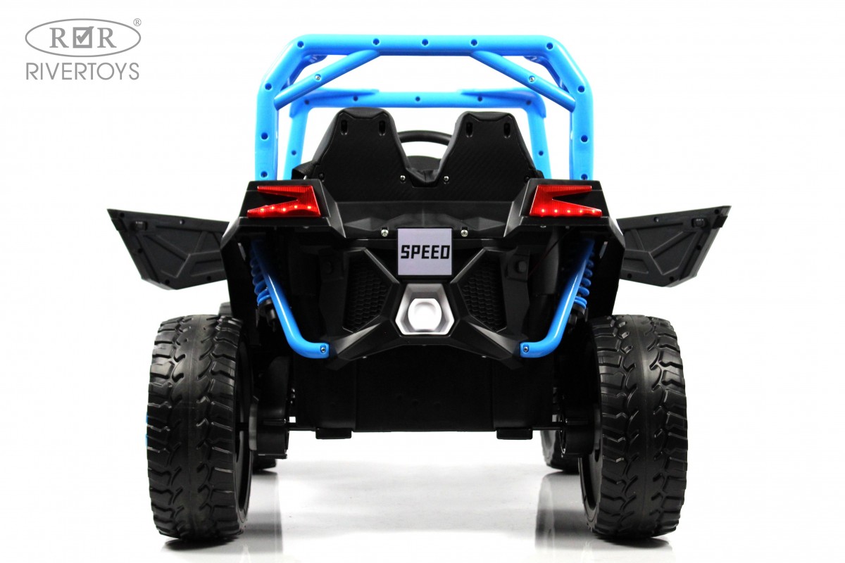 Сиденье выполнено из эко-кожи и оснащено пятиточечным ремнём безопасности, обеспечивающим надёжную фиксацию ребёнка. Двери открываются, добавляя удобства при посадке и высадке. Отдельным преимуществом является функция качалки, которая включается отдельной кнопкой и позволяет использовать электромобиль даже в статичном режиме.