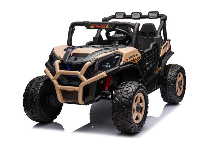 Детский электромобиль-багги UTV001 (BBH027) 4WD — это компактная полноприводная модель для детей от 1 до 6 лет с прочной конструкцией и высоким клиренсом, благодаря которому багги уверенно чувствует себя на прогулочных дорожках, дачных участках и лёгком бездорожье. Электромобиль оснащён аккумулятором 12V/10Ah, четырьмя моторами по 35W (до 13 500 об/мин), задними амортизаторами, резиновыми EVA-колёсами и выдерживает нагрузку до 60 кг. Машина запускается кнопкой, имеет одну скорость вперёд и одну назад, открывающиеся двери и кожаное сиденье с ремнями безопасности. Подсветка решётки радиатора и красивая подсветка верхних фонарей подчёркивают внешний вид модели и делают её яркой на прогулке. Управлять багги можно как самостоятельно, так и с помощью родительского пульта, что повышает безопасность маленьких водителей. Для дополнительного удобства предусмотрена ручка для второго пассажира, отдельная кнопка включения света, медиапанель с Bluetooth и наглядной индикацией заряда. Открывающийся капот даёт доступ к аккумуляторному отсеку. UTV001 (BBH027) — это детский электромобиль-багги 4WD, который сочетает прочность, функциональность, хорошую амортизацию и компактный формат при высокой максимальной нагрузке, оставаясь одной из самых популярных моделей в своём сегменте.