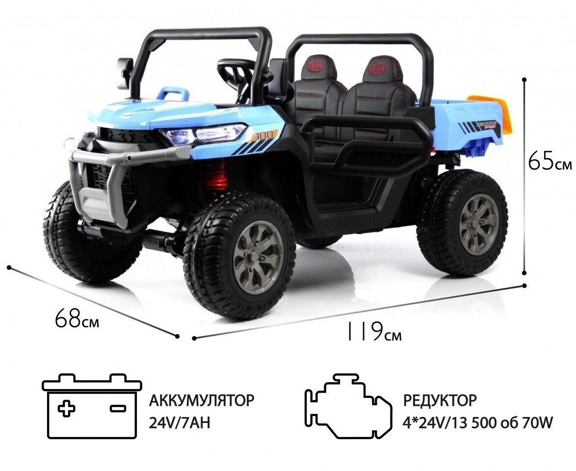 Buggy Н005НН - Двухместный, суммарная мощность - 280W, макс. скорость - 8 км/ч, колеса - EVA резина, АКБ - один 24V/7Ah, кресло - экокожа, пульт д/у - есть.